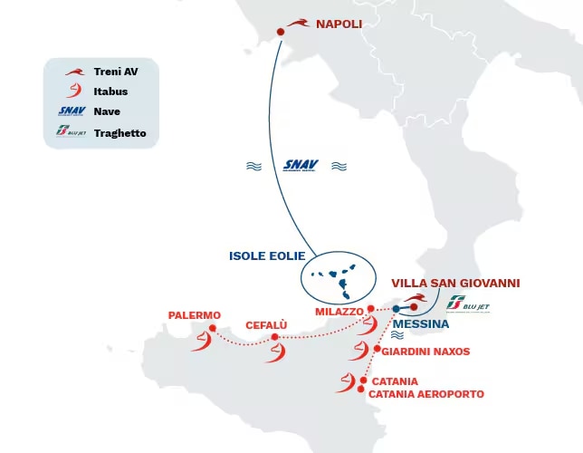 Scegliere Italo significa costruire un viaggio verso la Sicilia fluido, comodo e ben organizzato, grazie a un sistema di connessioni integrate che unisce treni ad Alta Velocità e trasporti complementari. Il percorso prende avvio dai treni AV Italo, che collegano le principali città italiane a Napoli, uno dei nodi strategici per proseguire verso il Sud e l’isola. Direttamente dal sito Italo è possibile pianificare l’intero itinerario con un unico biglietto, semplificando prenotazione e gestione degli spostamenti. Inoltre, una volta arrivati a Napoli, è possibile proseguire il viaggio verso le Isole Eolie grazie alla collaborazione con SNAV, che consente di integrare il collegamento marittimo all’interno di un percorso di viaggio coerente e ben organizzato.