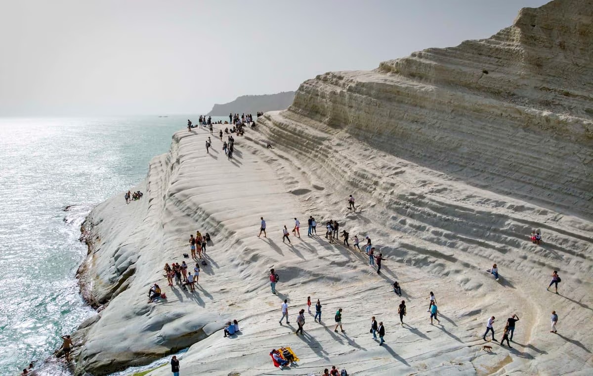 Scala dei Turchi è uno dei luoghi più scenografici della Sicilia meridionale. Questa imponente falesia di marna bianca, modellata nel tempo dall’azione del vento e del mare, crea una sorta di scalinata naturale che scende dolcemente verso l’acqua. Il contrasto tra il bianco accecante della roccia e l’azzurro intenso del mare rende il paesaggio unico e immediatamente riconoscibile. La zona circostante, parte della costa agrigentina, alterna spiagge sabbiose e tratti rocciosi, offrendo scorci suggestivi soprattutto nelle ore del tramonto, quando la luce calda esalta le forme sinuose della scogliera.